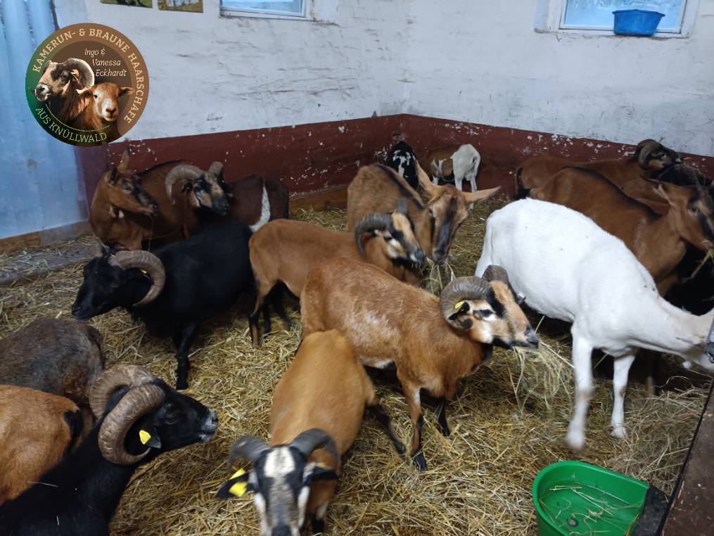 Im strömenden Regen haben wir dann am Folgetag, den 01.06.2025, Mittags um 12 Uhr 16 Kamerunschaf-Böcke und 4 Ziegen problemlos in den Anhänger verladen. Los ging es über die A7 Richtung Kassel. Abfahrt Melsungen wurde abgefahren. Nur rund 20 km waren es bis zur Felsburg.